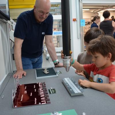 Licht einkoppeln, Schneiden, Beschriften, Operieren – beim Junior-Laser-Diplom geht es um das kindgerechte Ausprobieren. Wer alle Stationen meistert, kann im Anschluss zusehen, wie der Laser vor Ort blitzschnell eine persönliche Erinnerung schafft.